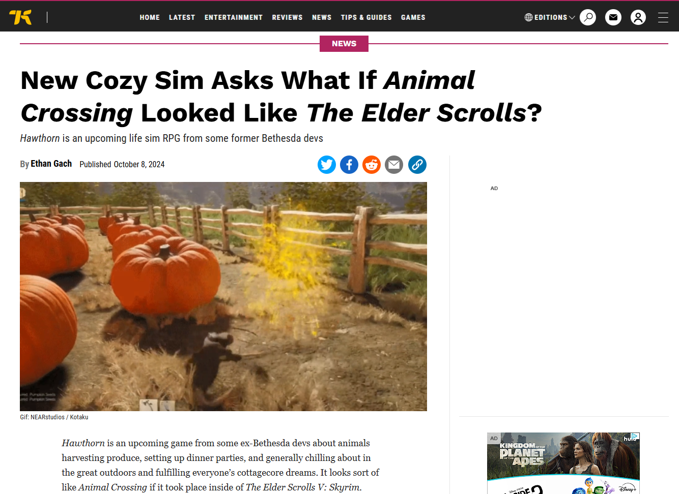 When we announced our debut game Hawthorn it unexpectedly went viral. A few dozen gaming and non-gaming outlets covered our announcement and several social media posts from content creators all over the world blew up and garnered over 10 million views! We are thrilled that so many people are excited for this game, especially since this is a passion project and we have bootstrapped this game with our personal savings to get to this point.